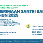 Pendidikan pesantren adalah pilar utama dalam membangun generasi muda yang berahlakul karimah , cerdas dan berwawasan luas. Pesantren hadir sebagai tempat dimana ilmu ad-dini dan ilmu insani dipadukan secara harmonis sehingga terbentuk insan paripurna. PPI 98 Pasirjeungjing adalah lembaga pendiikan pesantren yang berkomitmen mencetak generasi tafaquh fiddin. Mulai januari sampai dengan juli 2025 menerima calon…